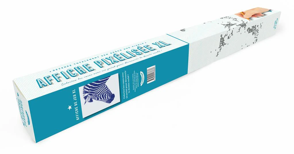 Affiche de Jeu XL Pixel Zen Art Ce poster géant sera idéal pour occuper les enfants qui aiment le coloriage pixel !Au fur et à mesure que votre enfant va colorier les cases avec des petits points, il apparaitra la tête d’un magnifique Zèbre. Cette affiche XL fera également un très joli poster en décoration de chambre !Un cadeau original qui occupera votre enfant pendant des heures !