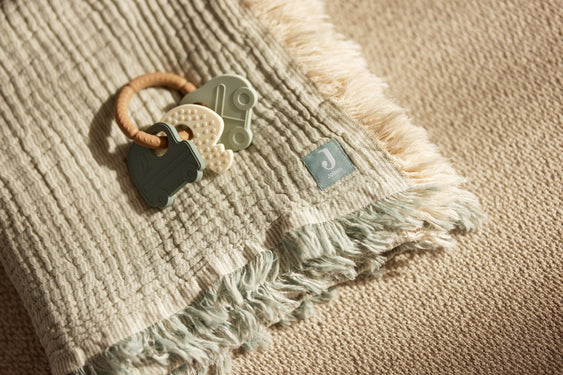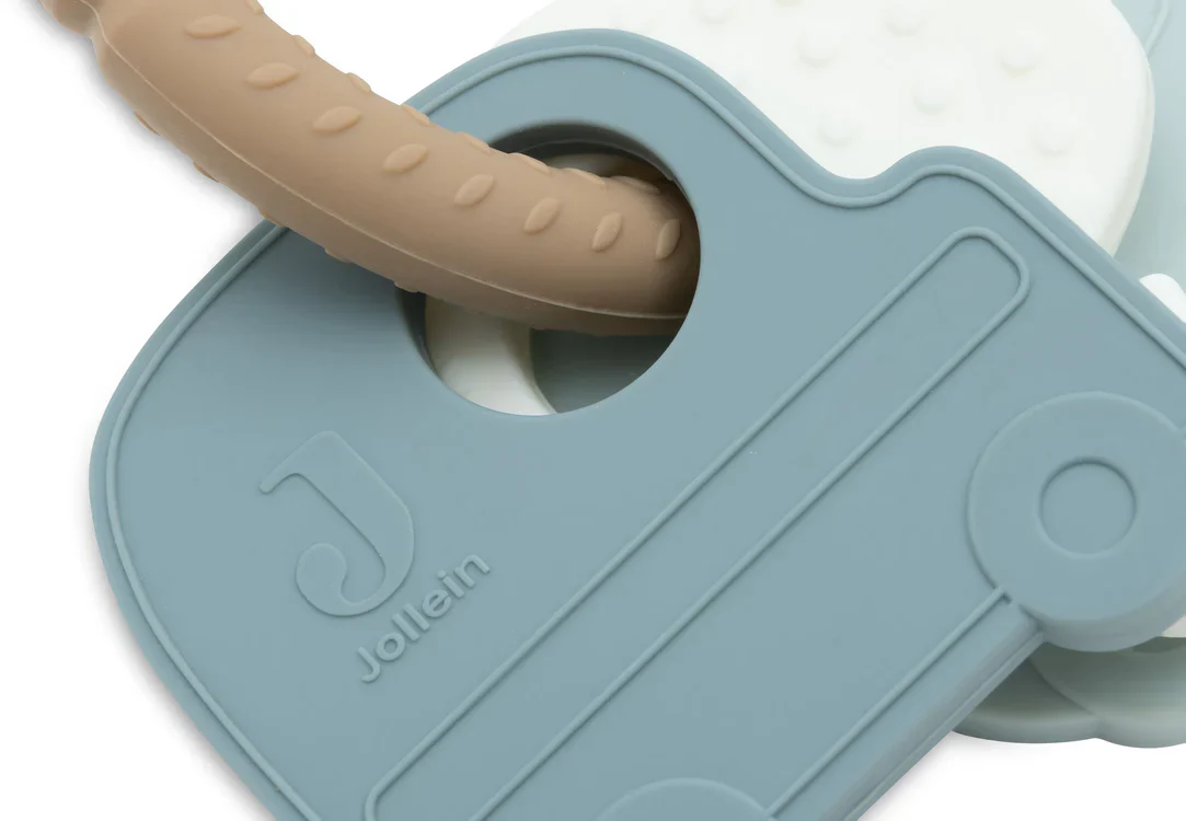 Cette anneau en silicone orné d’une voiture, d’une camionnette et d’une clé dans les coloris Wild Rose, Sea Green, Caramel et Nougat est un jouet idéal pour les petits qui commencent à faire leurs dents. L’anneau à petites boules aide à soulager les maux de dents et, grâce aux anneaux en silicone, vous pouvez facilement l’attacher à la poussette ou au siège de la voiture. Cet anneau de dentition offre une distraction et est idéal pour les déplacements !