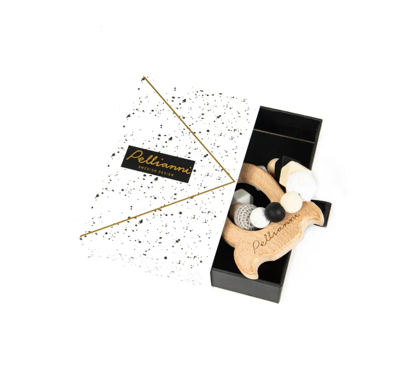 Le but de la boîte n’est pas seulement d’en faire un beau cadeau mais aussi de donner envie à celui qui la reçoit de la garder pour y ranger de petites choses. C’est pourquoi le look est moins enfantin et plus attirant pour les parents. Nous voulons minimiser les déchets !