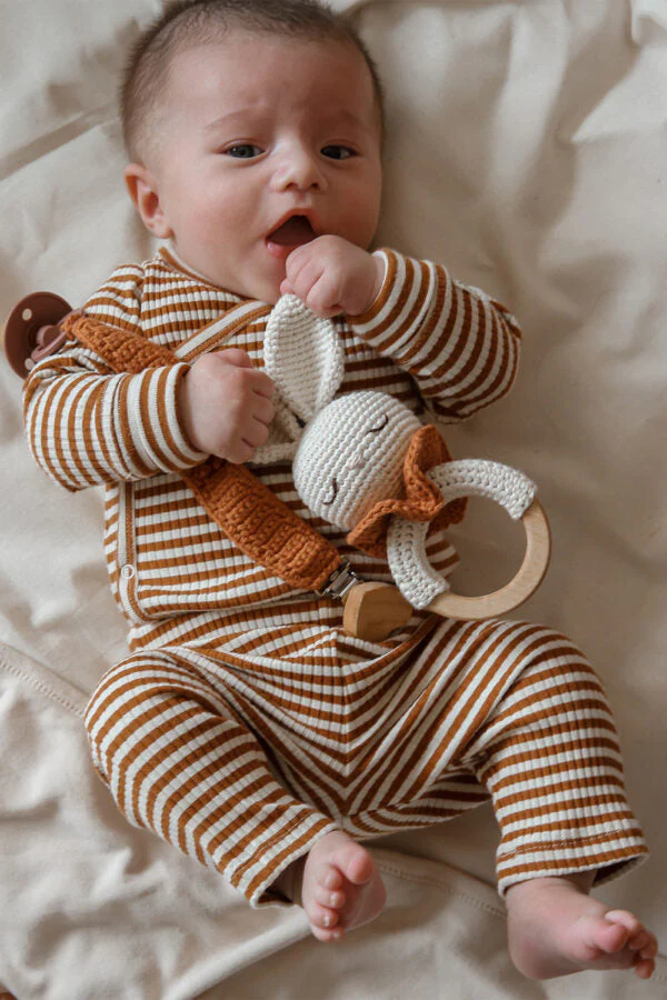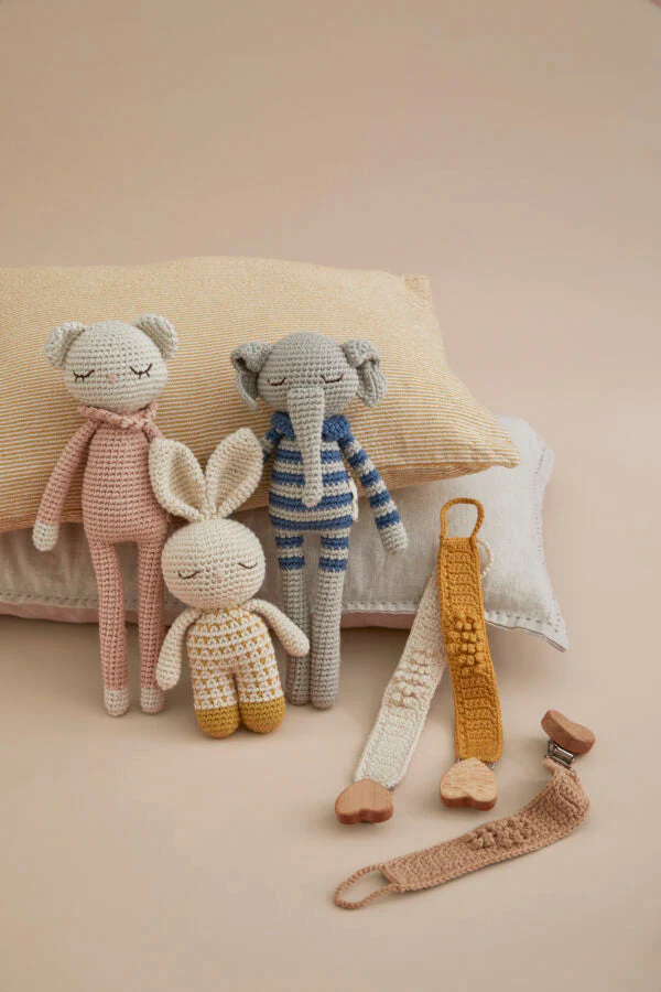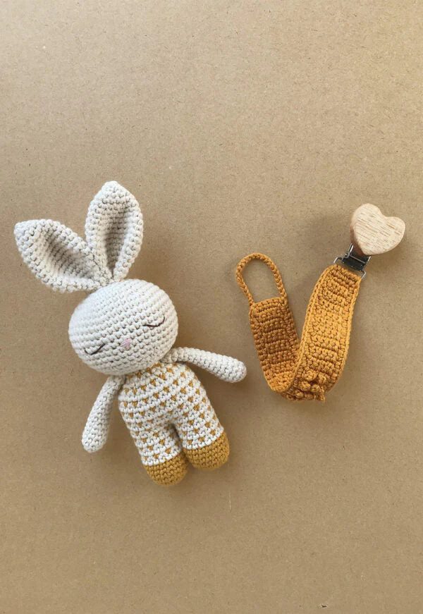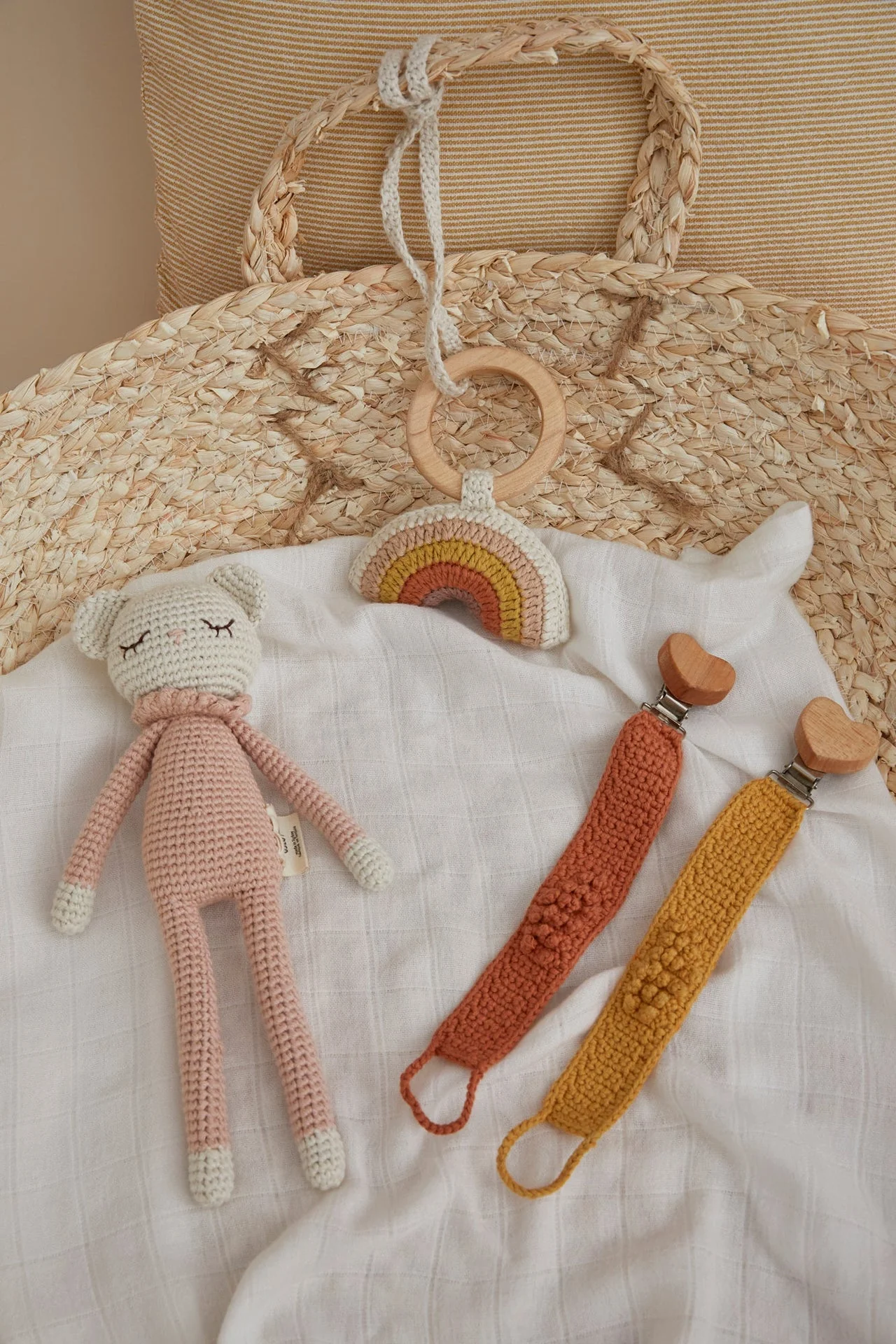 Voici de magnifiques attaches-sucette en crochet et bois d’érable. Un design classique dans des couleurs tendances. Taille : 22 cm Convient dès la naissance Conforme aux normes CE et EN-71 Tous les produits sont entièrement crochetés et brodés à la main. Ils sont fabriqués en coton bio certifié GOTS, teint naturellement à base de plantes, […]