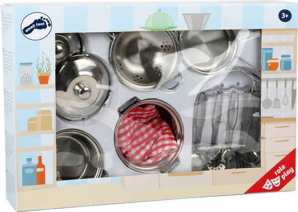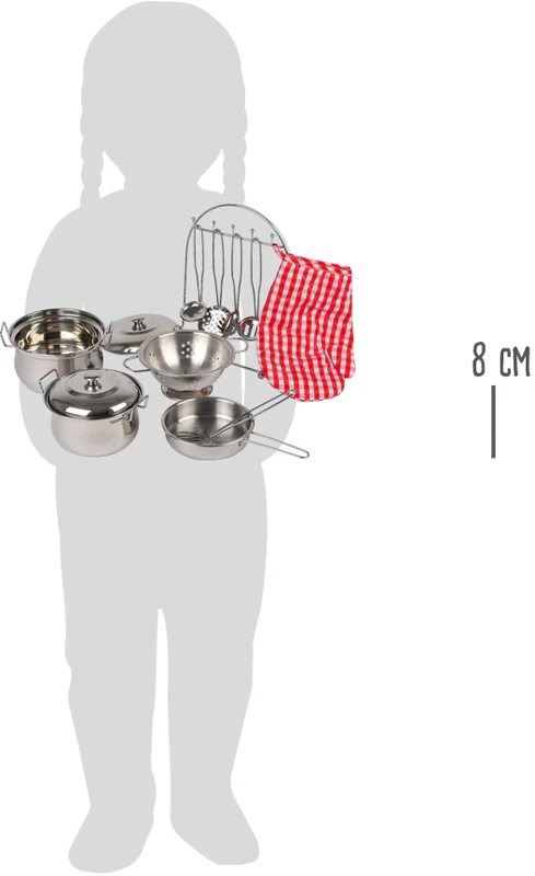 Grâce à cette batterie de cuisine composée de différentes casseroles et d’ustensiles de cuisine, chaque petit cuisinier devient un grand chef ! Pratique : le gant de cuisine et le support avec les ustensiles de cuisine sont inclus dans l’ensemble. Avec ces belles casseroles en métal, un gant et un support avec ustensiles, les petits cuisiniers font des merveilles dans la cuisine comme les pros! 13 pcs.