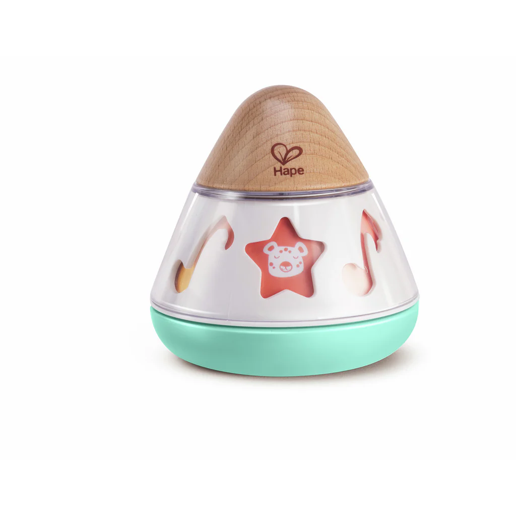 Découvrez notre boîte à musique tourne en rond qui sert également de jouet d’éveil pour endormir ou éveiller les bébés. Remontez la boîte à musique et posez-la près de bébé pour l’apaiser ou donnez-lui dans les mains lors des phases d’éveil afin qu’il s’amuse à la faire rouler sur le sol. Il va adorer observer les symboles musicaux changer progressivement de couleur en tournant. Grâce à sa forme lisse et arrondie et son design tendance, ce jouet est parfaitement sécurisé pour les enfants qui pourront le faire rouler ou s’endormir à ses côtés.