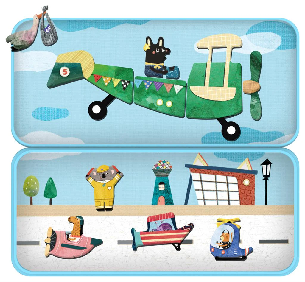 Les boîtes de jeu magnétiques originales de voyage de la marque australienne « mierEdu » se déclinent en 3 thèmes : métiers, véhicules et personnages de contes de fées. Chaque boîte contient deux scènes avec, d’un côté, un personnage à habiller et, de l’autre côté, un décor avec plus de 30 pièces magnétiques. Pour jouer à la maison et en voyage !