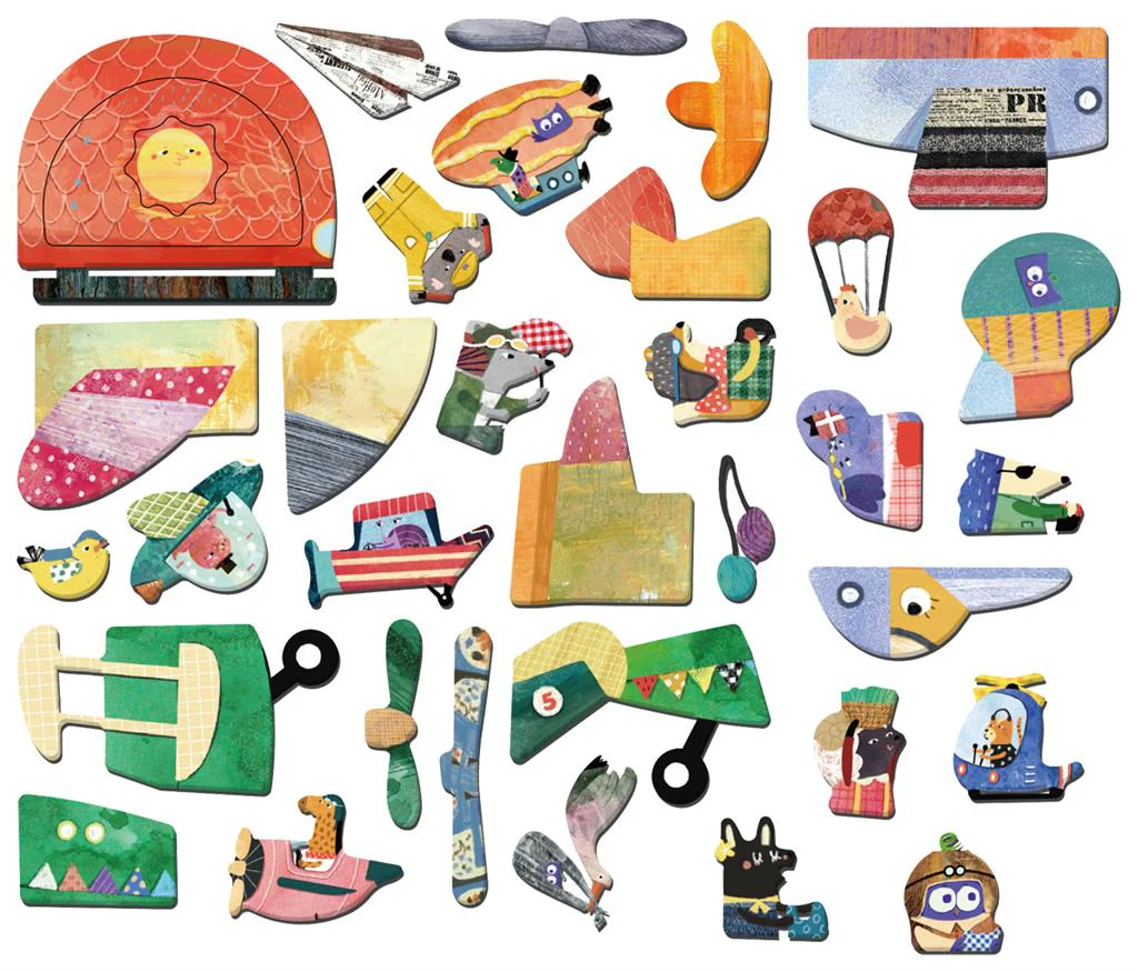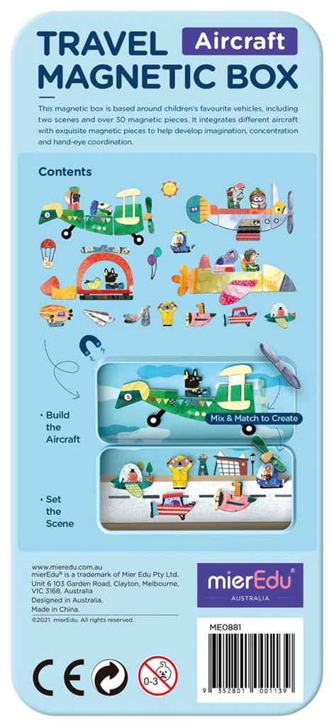 MierEdu BOÎTE DE PUZZLE MAGNÉTIQUE voyage: AVIONS 9×3,3×20,3cm, contient 2 scènes et plus de 30 pièces de puzzle magnétiques, dans une boîte en métal, 3+