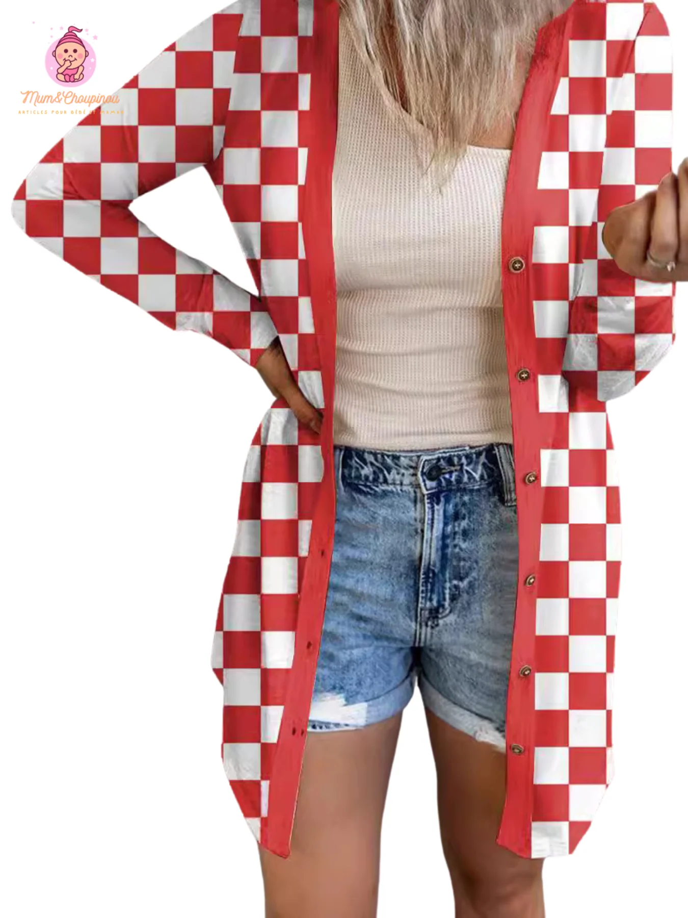 Ajoutez une touche de style moderne et décontracté à votre garde-robe avec notre cardigan à motif damier pour femme ! 🏁