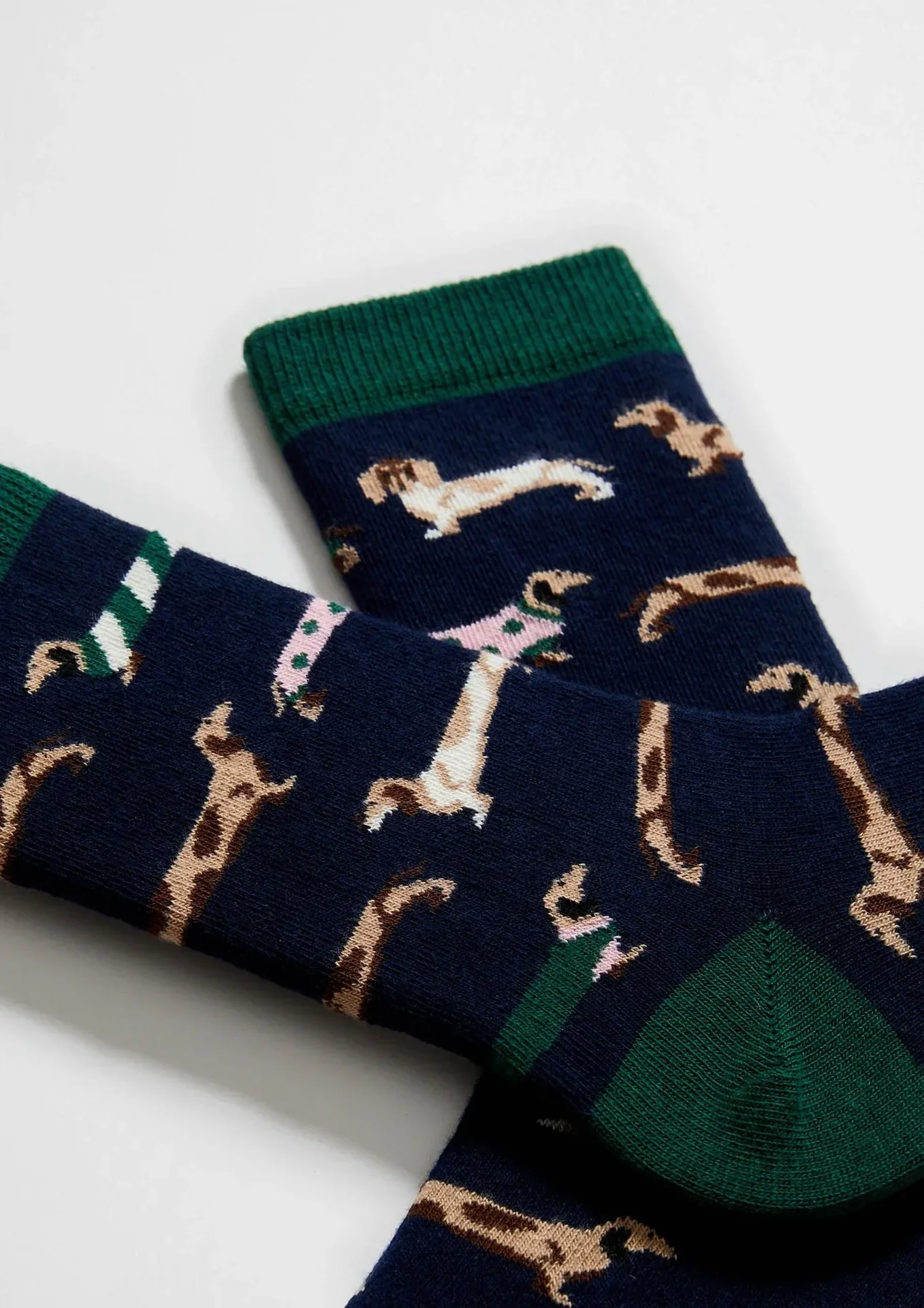 Fabriquées en coton 100 % biologique, les chaussettes BePets sont conçues pour résister au mode de vie actif des enfants grâce à leur conception confortable sans couture. La couleur bleue et les détails verts ainsi que l’imprimé teckel en font une chaussette polyvalente à porter avec tout type de chaussures.