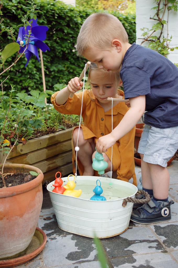 Beaucoup se souviennent du voyage d’enfance Ă Tivoli et de la visite obligatoire Ă l’Ă©tang aux canards oĂč les canards naviguaient en rond. Un endroit oĂč la victoire Ă©tait garantie lorsqu’un canard mordait Ă l’hameçon. Que le prix soit dans la baignoire ou dans le bassin d’eau de la maison dĂ©pend de chacun, mais la magie reste la mĂȘme avec le jeu de pĂȘche au canard de Scratch, comme c’Ă©tait le cas Ă Tivoli. L’ensemble comprend six canards joyeux, tous flottant joliment dans l’eau grĂące au contrepoids en bas. Tous les canards ont une boucle sur la tĂȘte, ce qui les rend faciles Ă attraper avec les cannes Ă pĂȘche incluses.