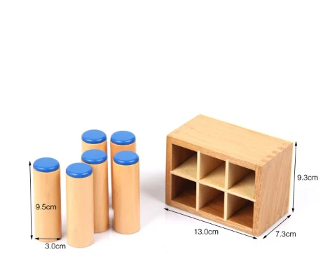 Composé de cylindres en bois aux extrémités colorées, ce jeu stimule l’écoute active et la discrimination auditive : chaque cylindre émet un son différent lorsqu’on le secoue, invitant l’enfant à explorer, comparer et associer les paires.