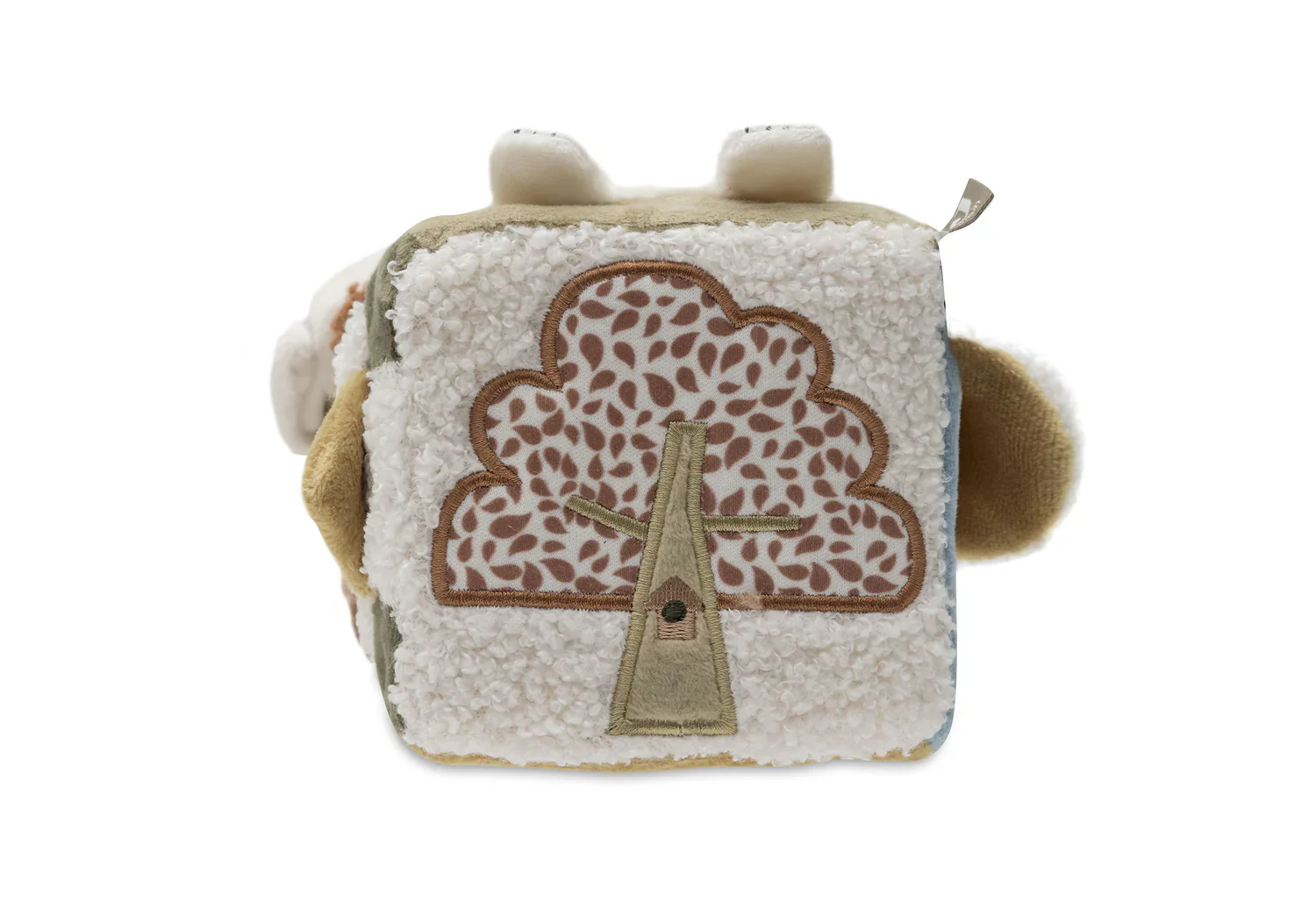 Ce cube d’activités tout doux de la collection Tiny Park est un jouet enchanteur pour votre bébé. Avec des animaux adorables comme un chat, un chien et une chouette, et des éléments interactifs comme des oreilles qui crissent et un miroir, il stimule les sens et le développement moteur de votre tout-petit. Un cube ludique et éducatif, idéal pour des heures de jeu dans le parc ou en balade !