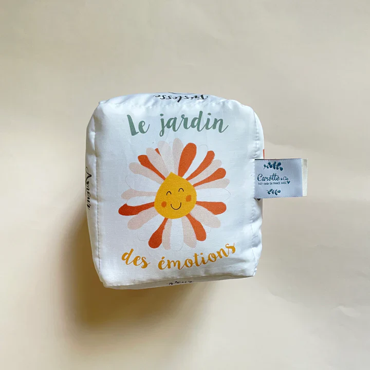 Bébé rêve part à la découverte du monde qui l’entoure? Le cube d’éveil Le Jardin des émotions en tissu va attirer toute son attention grâce à ses illustrations florales qui invitent à la rêverie. Son joli design et ses illustrations contrastées sont idéales pour les premiers mois de bébé et stimulent le développement visuel de bébé. Les textures différentes, papier bruissant et petite clochette à l’intérieur, aident au développement de la perception tactile. En le renversant, le manipulant, bébé prendra conscience de son corps et développera sa coordination main-oeil. Autant de découvertes visuelles et tactiles pour les périodes de jeu. Son tissu souple est imprimé avec des encres à l’eau certifiées Oekotex, sans substances nocives, pour garantir tout le confort nécessaire à bébé.