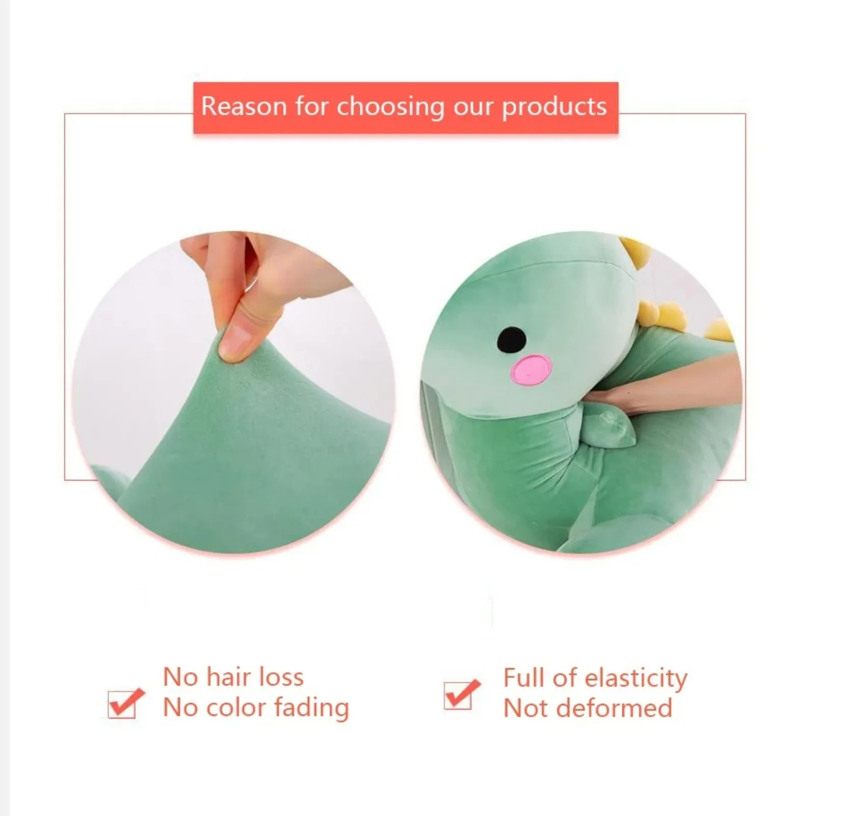 Découvrez le Doudou dinosaure | Dinosaur Pillow™, la peluche qui allie douceur, confort et imagination pour le bonheur de votre enfant. Ce compagnon adorable, disponible en rose, violet, vert et jaune, mesure entre 30 et 40 cm, offrant une taille parfaite pour les câlins et les jeux. Avec son design unique de dinosaure, il stimule la créativité tout en apportant réconfort et tendresse.