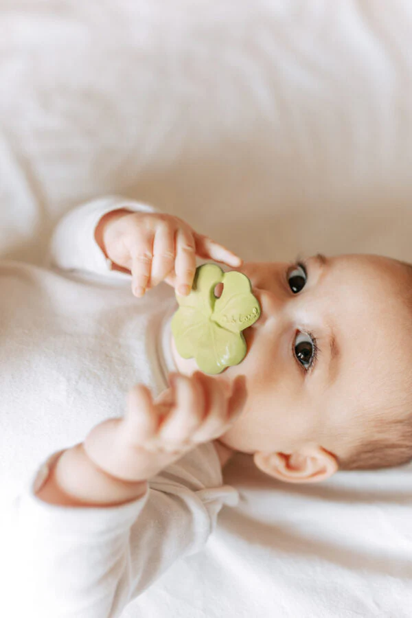 Eli the Clover est le nouveau concept de jouet de dentition pour les bébés d’Oli&Carol. Cette conception légère et ergonomique est parfaite pour qu’ils puissent la tenir et la mâcher facilement. Ce jouet de dentition pour bébé comprend une gamme de textures pour aider à apaiser les gencives des petits et est facile à accrocher à un porte-sucette et à emporter partout avec vous !