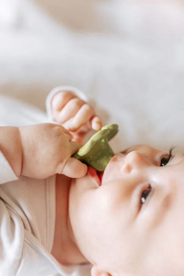 Ce jouet de dentition Chewy-to-Go favorise le développement naturel du palais et de la mâchoire des nouveau-nés tout en stimulant leurs sens. Chaque jouet de dentition pour bébé est fabriqué à la main, un par un, avec du caoutchouc 100% naturel et peint à la main avec des pigments naturels – c’est le cadeau durable parfait pour les bébés !