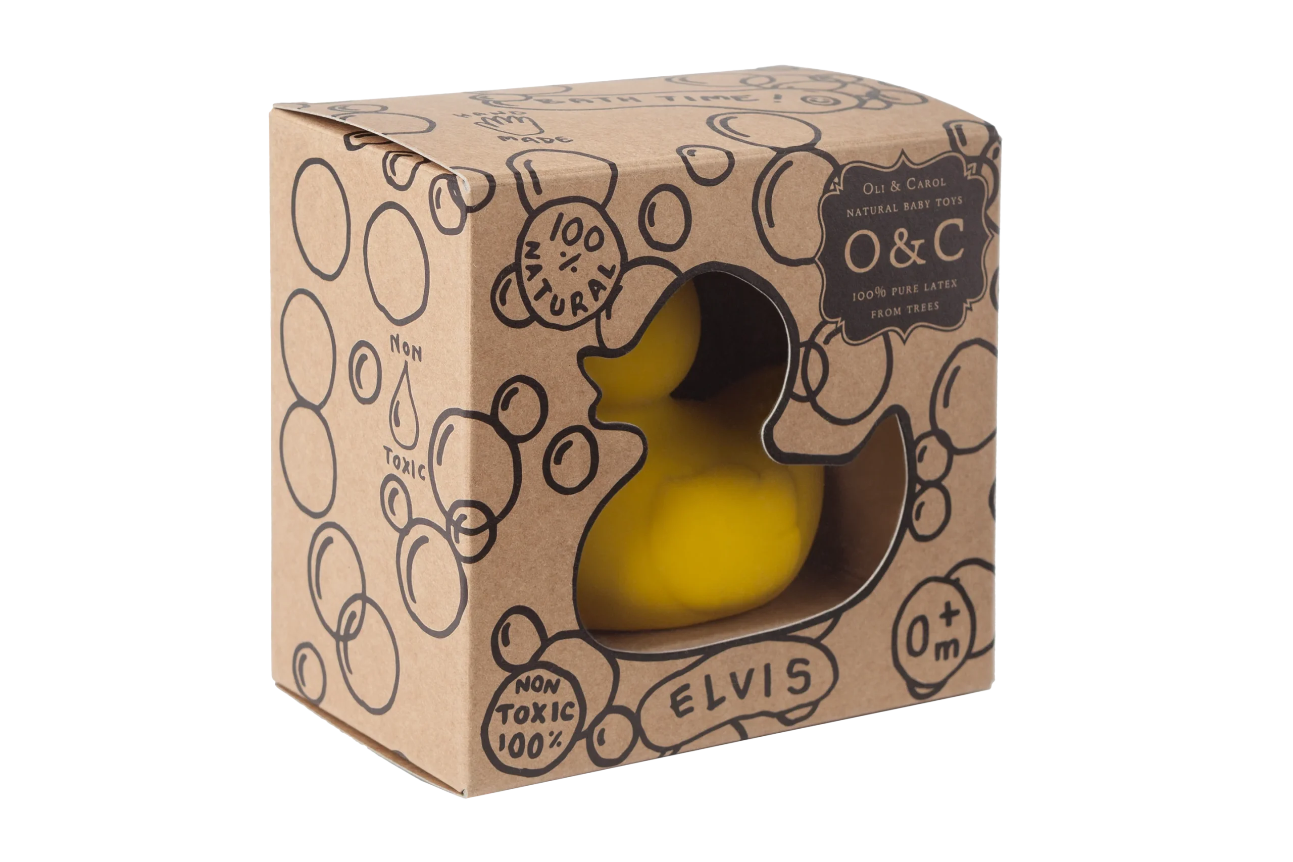 Le petit Canard Elvis Jaune est le canard en caoutchouc classique pour les moments du bain, à la différence qu’il est fait uniquement de caoutchouc 100% naturel et qu’il n’a pas d’orifices. Fait d’une seule pièce, il ne permet pas à l’eau de pénétrer à l’intérieur, évitant ainsi la formation de bactéries et de moisissures. Le bain deviendra le moment le plus amusant de la journée, sa texture lui permet de flotter dans l’eau et de naviguer entre les bulles de savon, stimulant ainsi les sens et l’imagination des petits.