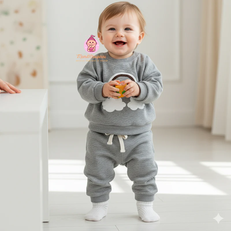 Fabriqué dans un molleton de coton doux et respirant, cet ensemble gardera votre bébé au chaud et à l’aise toute la journée. La coupe ample et moderne permet une liberté de mouvement totale, idéale pour les bébés actifs.
