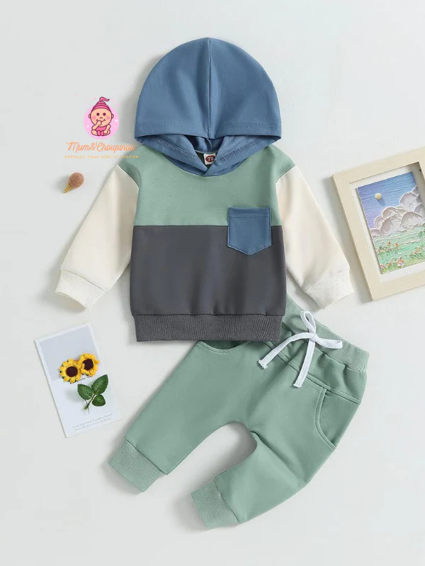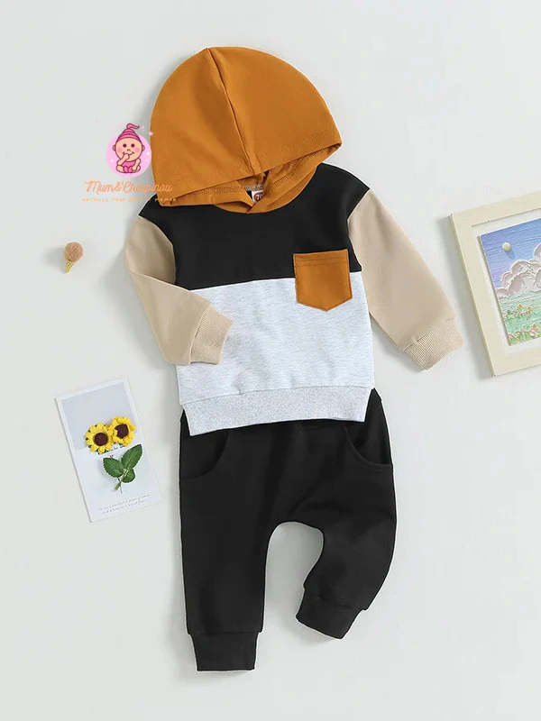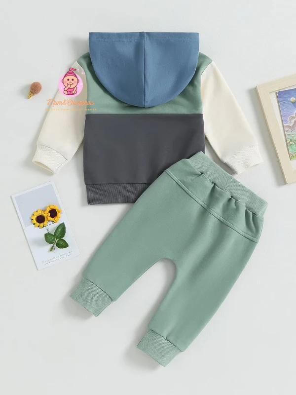Offrez un style moderne et un confort absolu à votre bébé avec notre ensemble de survêtement à capuche color block ! 🎨 Conçu pour les petits aventuriers, cet ensemble est parfait pour le jeu, la crèche ou les moments de détente en famille.