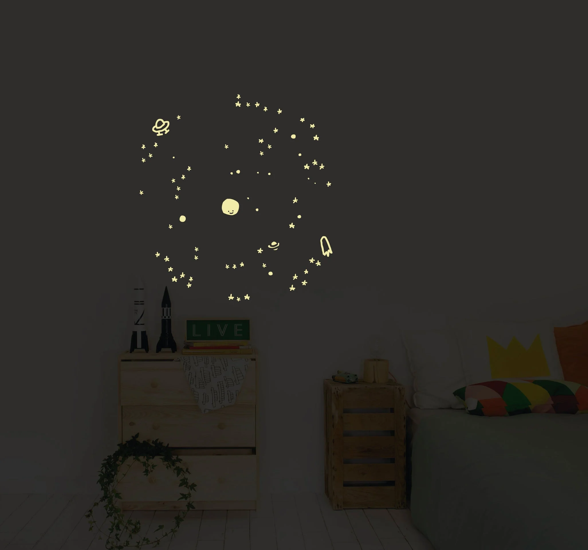 Cette série de stickers muraux fait effet en journée, mais illumine votre nuit. Made in EU.
