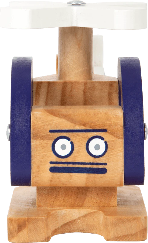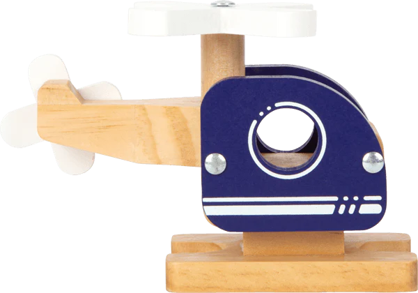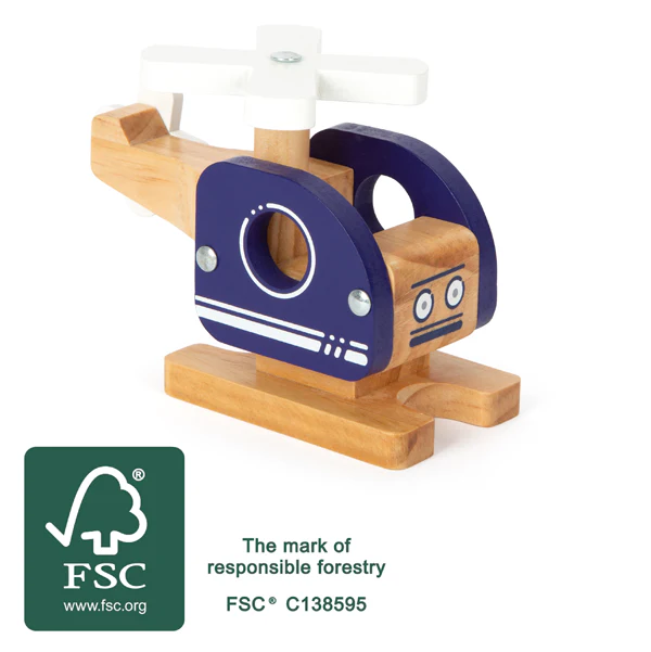 Hélicoptère prêt à décoller ! Cet hélicoptère de jeu compact et stable en bois certifié FSC® 100% est, avec ses pales mobiles, un jouet idéal pour l’espace aérien de la chambre d’enfant et un article à emporter très apprécié en voyage ! Grâce aux ouvertures des fenêtres, l’hélicoptère est facile à saisir, même par les petites mains. Un visage à l’avant de l’hélicoptère jouet lui confère une personnalité propre et offre des possibilités de jeu créatives et imaginatives aux petits pilotes. Qui sera le prochain à décoller ?