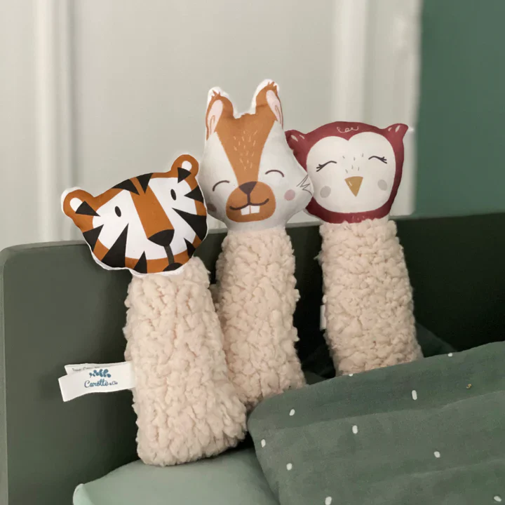 De la naissance à 12 mois, le hochet gling-gling stimulera les sens de bébé. Son petit grelot tinte tout en douceur et sa forme allongée en double gaze de coton Oekotex permet à bébé de l’attraper facilement. Fabrication française.