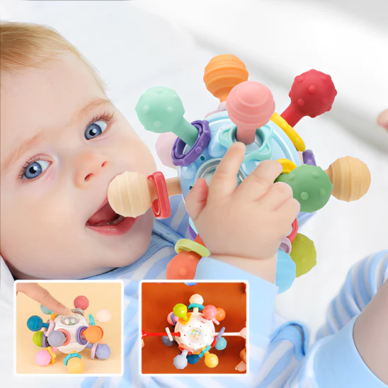 La période de dentition peut être difficile pour les bébés et leurs parents. Grâce aux 12 tentacules en silicone souple du hochet sensoriel BABY BALL TOYS™, votre bébé trouvera un soulagement immédiat. Ces tentacules massent doucement les gencives, apaisant l’inconfort et offrant une distraction bienvenue pendant cette phase importante du développement.