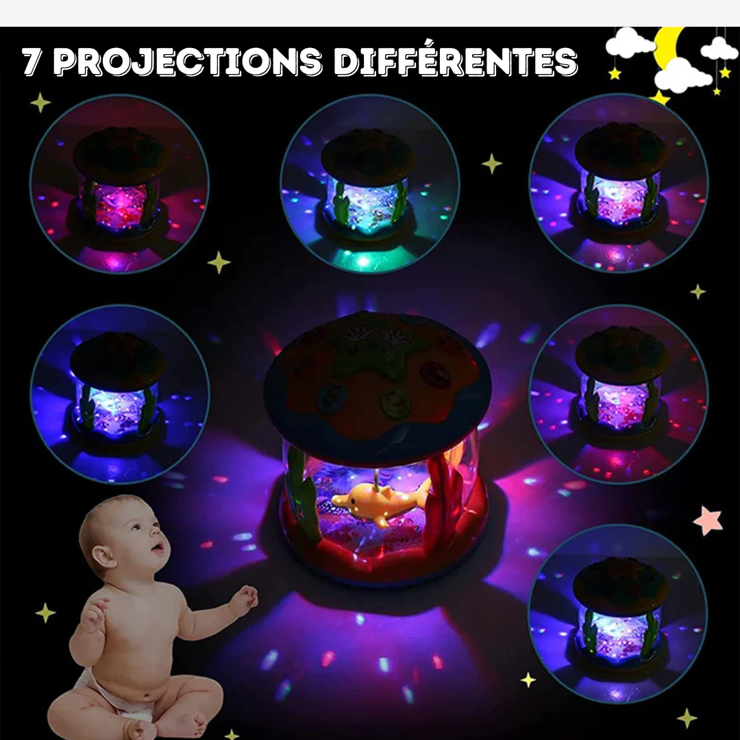 Imaginez votre petit explorateur émerveillé par un océan magique projeté dans sa chambre. Notre jouet musical offre une rotation à 360 degrés de lumières colorées, recréant l’atmosphère fascinante des fonds marins. Les dauphins et les tortues dansent sur les murs, stimulant l’imagination de votre enfant et l’invitant à découvrir les merveilles de la mer.