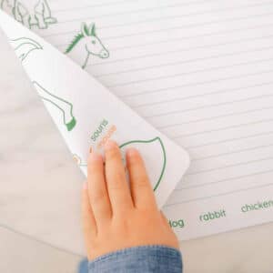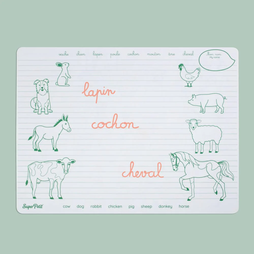 Apprendre à lire et écrire le nom des animaux de la ferme en français et en anglais.