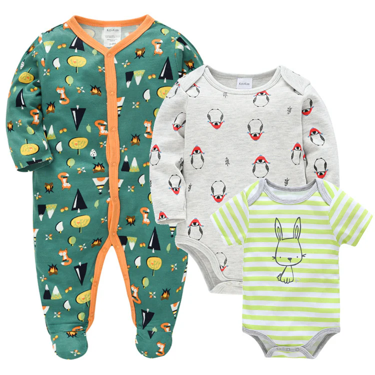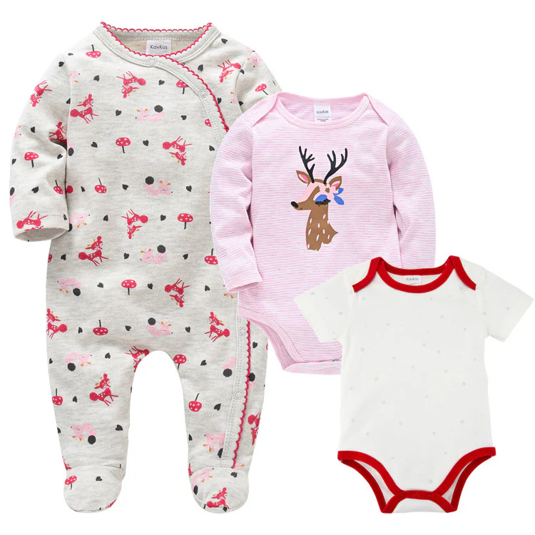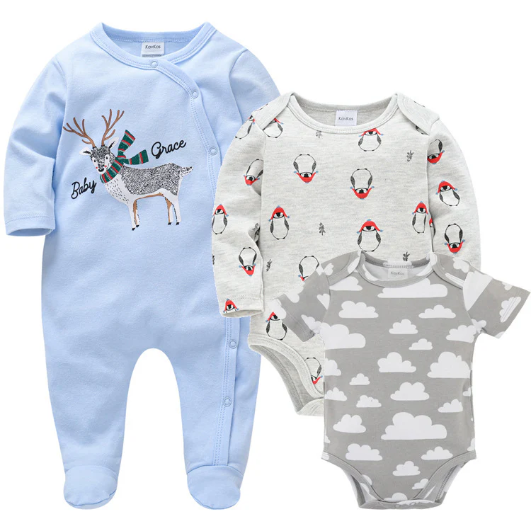 🌈 3 pièces assorties : 1 grenouillère à manches longues + 2 bodies (manches longues & courtes)
