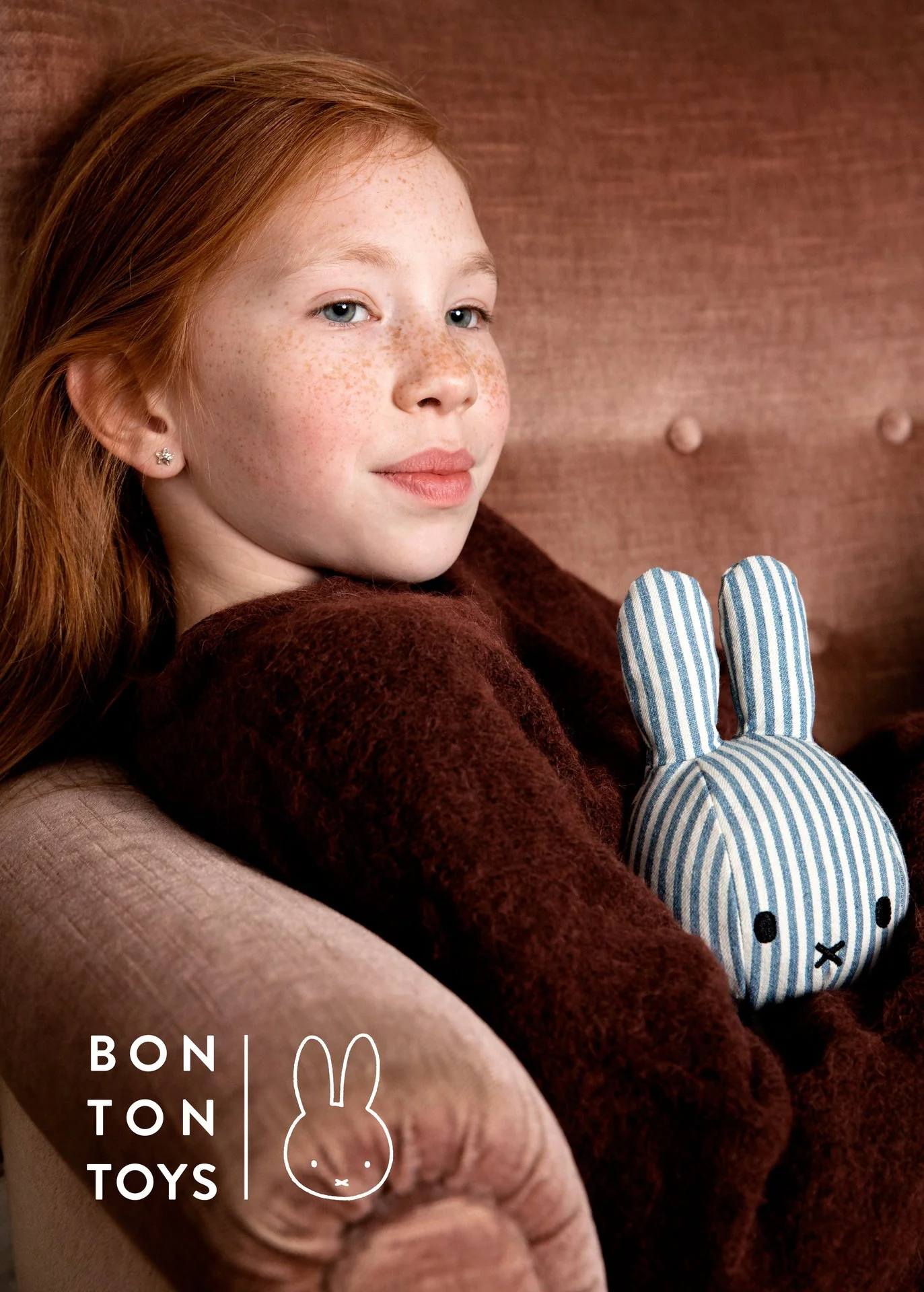 Le jeans à rayures en peluche Miffy. Trop classe ce produit. 23cm. Age: 0+ Colis : dimensions: 14 x 12 x 23 cm Colis : poids: 80 g Conformité: CE, EN71-1/2/3 Couleur: Bleu Dimensions: 14 × 12 × 23 cm Made in: Chine Matériaux: 100% Coton, Rembourrage 100% recyclé Poids: 80 g