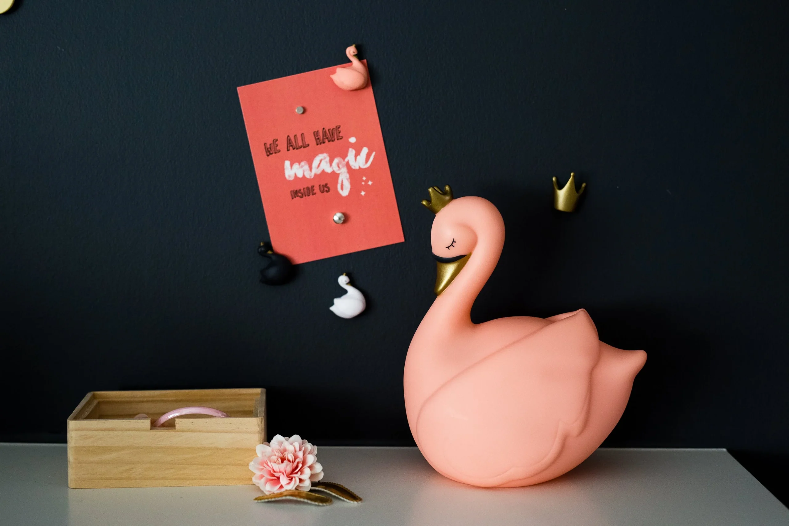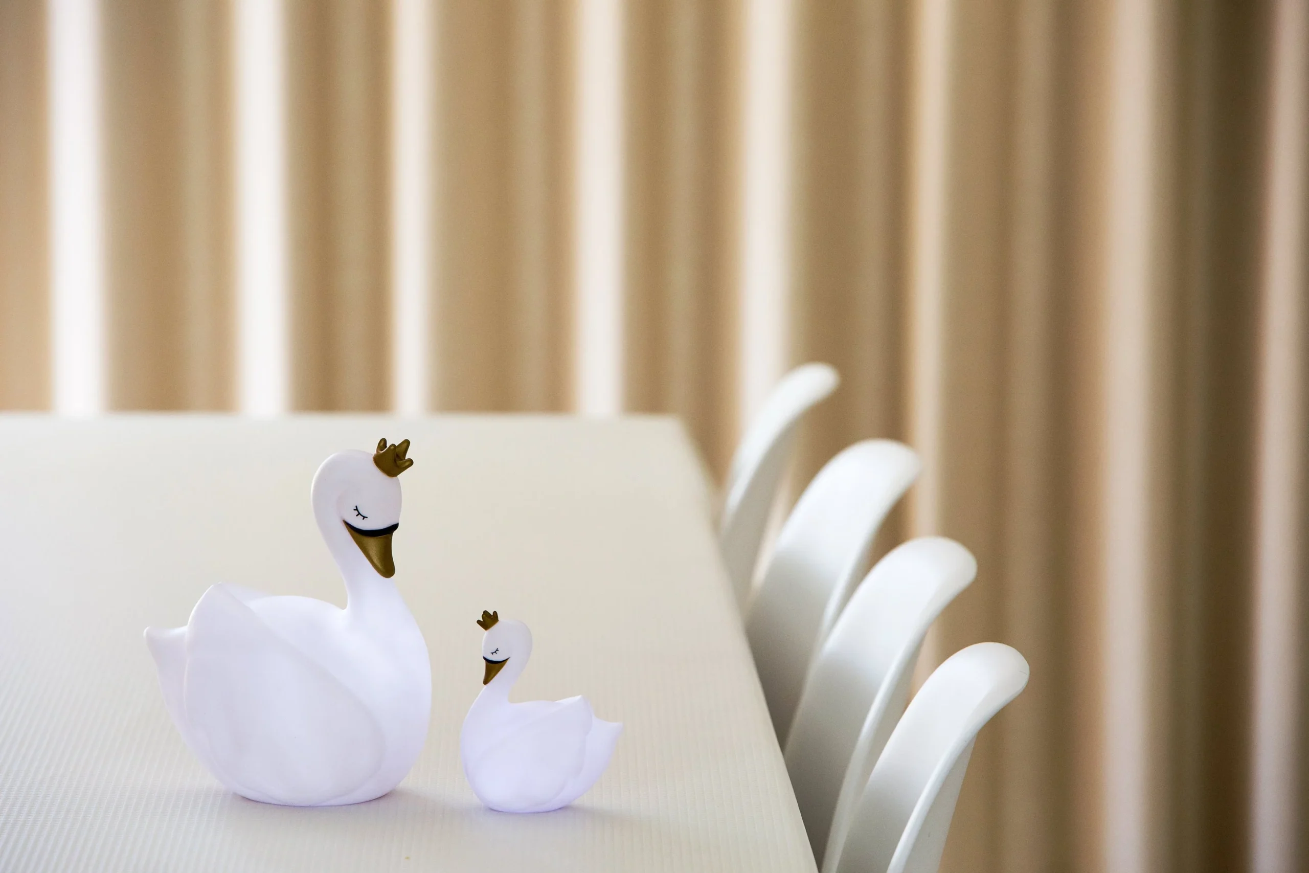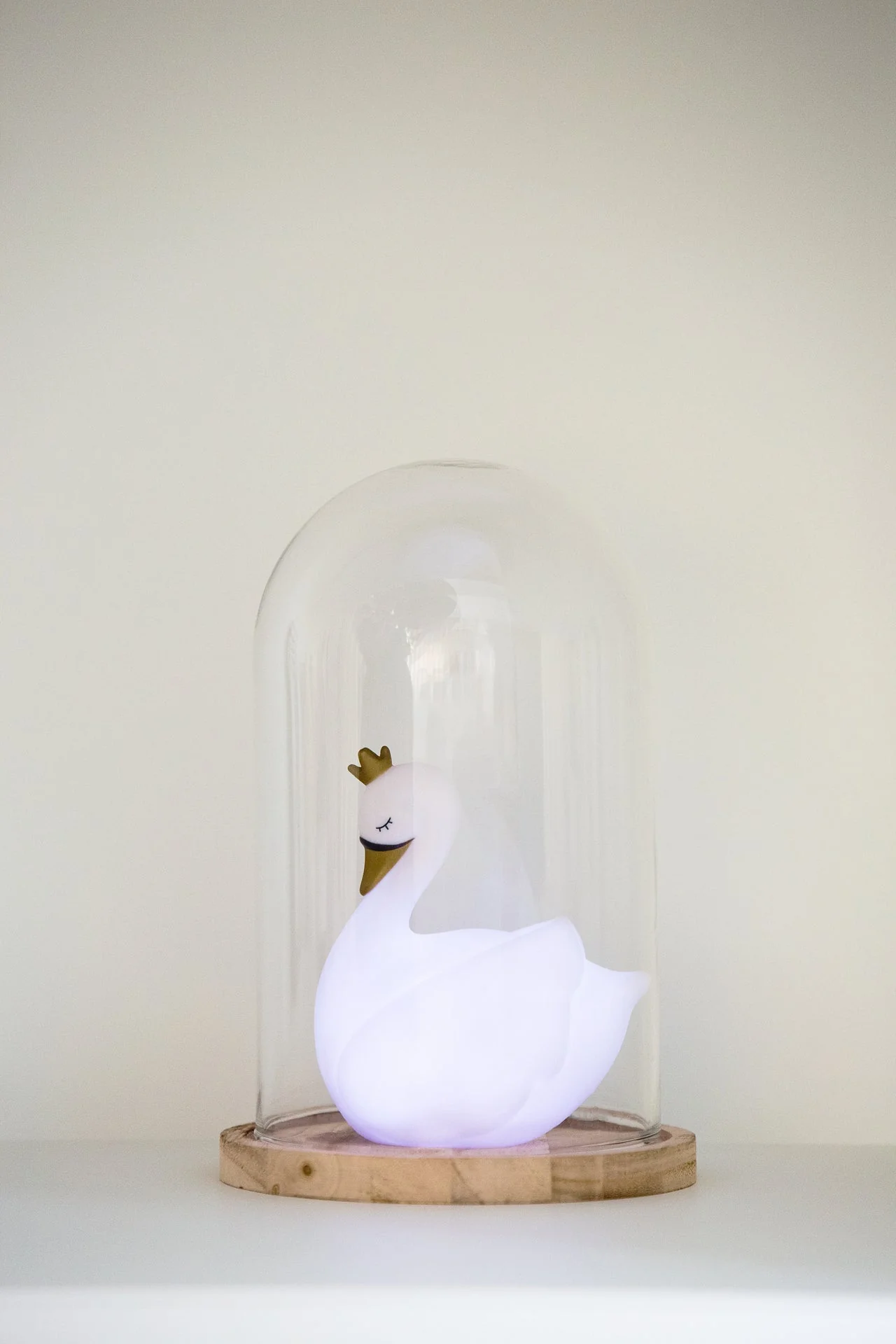 Une mini Dame Blanche cygne LED qui s’allume au toucher. Rassurant pour votre enfant pendant la nuit. S’éteint après 1 minute.