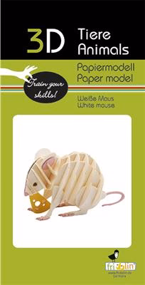3D Paper Model: SOURIS Blanche 8,5×5,5×3,5cm, en sachet 10,5x21x0,5cm
