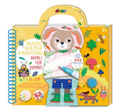 Avenir Peinture Magique à l’eau: LIVRE Medium / ANIMAUX DE LA FORÊT 30×29,5x2cm, 8 pages réutilisables avec jeu 4-en-1, 3+