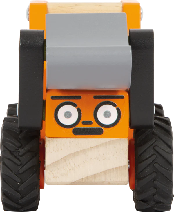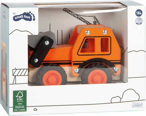 Soulever et déplacer des charges dans la chambre d’enfant ! Sur des roues robustes et recouvertes de caoutchouc, cette pelleteuse sur roues massive et tout-terrain en bois certifié FSC® 100% transporte des matériaux importants à travers la chambre d’enfant. Équipé d’une pelle mobile, ce chargeur frontal garantit un jeu de rôle créatif et réaliste dans la chambre d’enfant. Grâce aux bords arrondis et aux ouvertures des fenêtres, il est facile à saisir et à déplacer pour les petites mains des enfants. Un visage sur l’avant du véhicule lui donne une personnalité et invite au jeu créatif et plein d’imagination. Dans la cabine du conducteur, il y a en outre suffisamment de place pour un personnage qui peut s’installer à l’avant du véhicule de chantier.