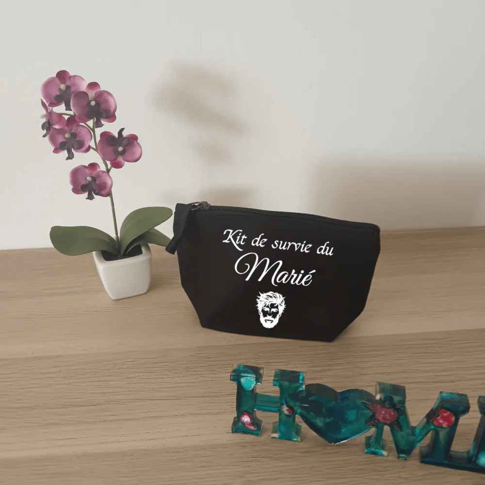 Version masculine pour l’enterrement de vie de garçon, elles peuvent être personnalisées avec des prénoms, des dates ou des phrases humoristiques : « Mission EVG », « Kit de survie du marié », etc. Idéales pour y glisser chewing-gums, cachets anti-maux de tête, lunettes de soleil…