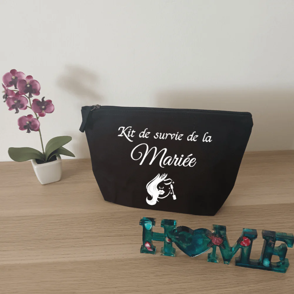 Parfaites pour glisser un rouge à lèvres, des lingettes ou un petit mot doux, nos pochettes EVJF sont disponibles avec des messages funs comme « Demoiselle d’honneur parfaite », « Témoin de choc » ou encore « Kit de survie de la mariée ». Un cadeau original et pratique pour les copines de la future mariée !