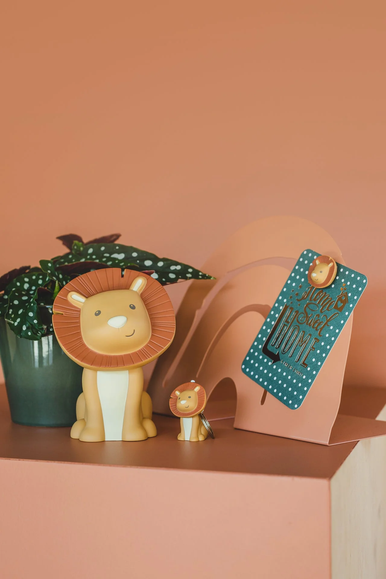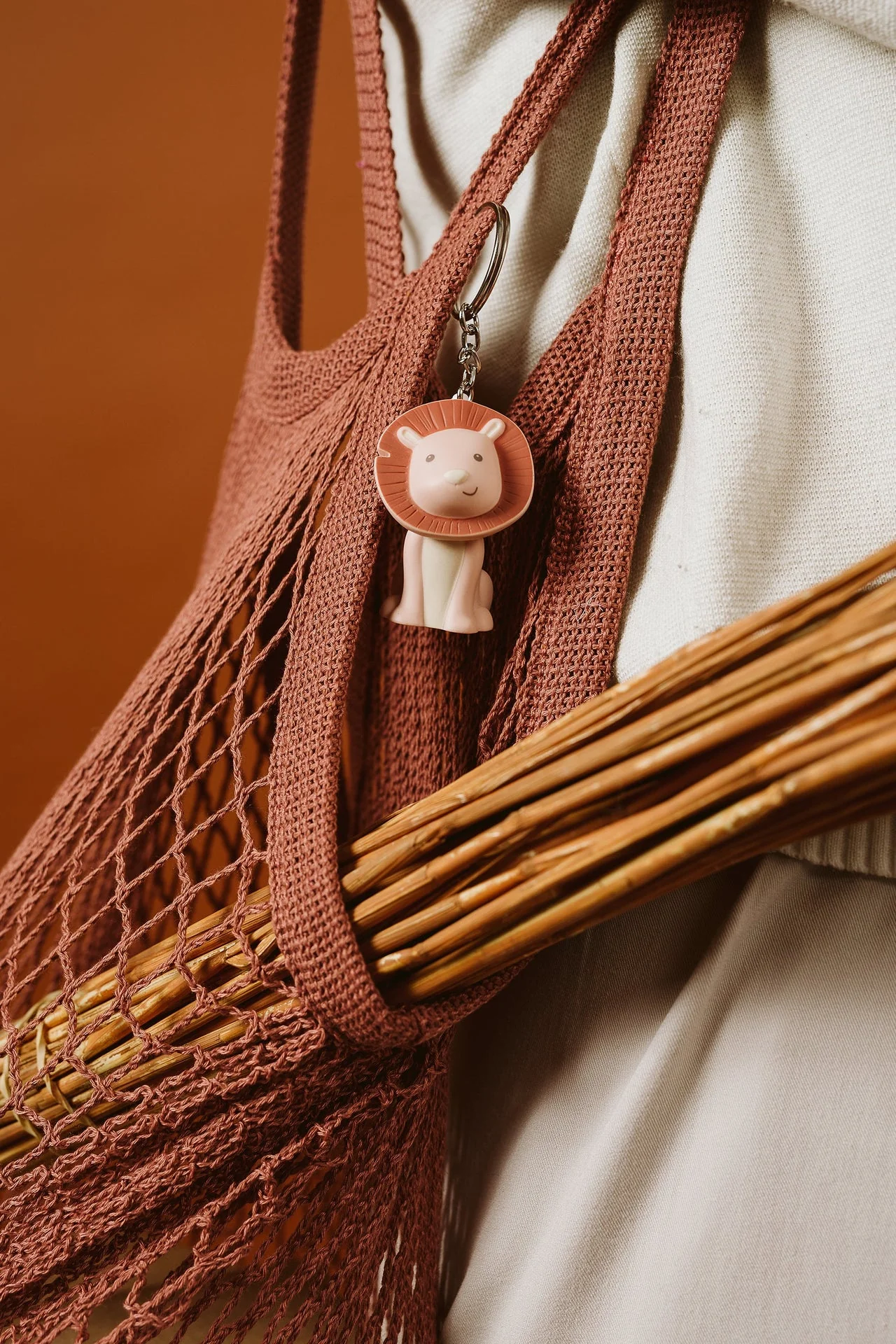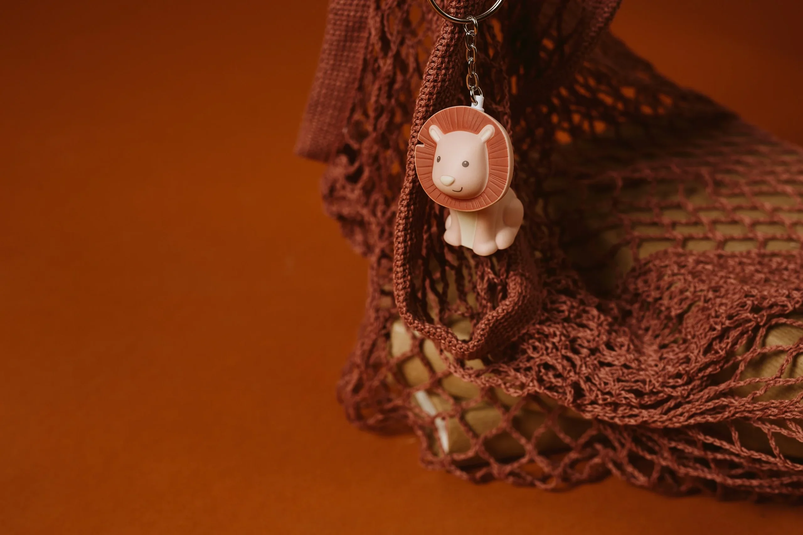 La bravoure du lion Hakuna accroché à vos clefs. Age: 3+ Couleur: Magnolia, Marron Dimensions: 4 × 3 × 5 cm Made in: Chine Matériaux: PVC sans Phtalates Poids: 14 g Couleur: Marron, rose