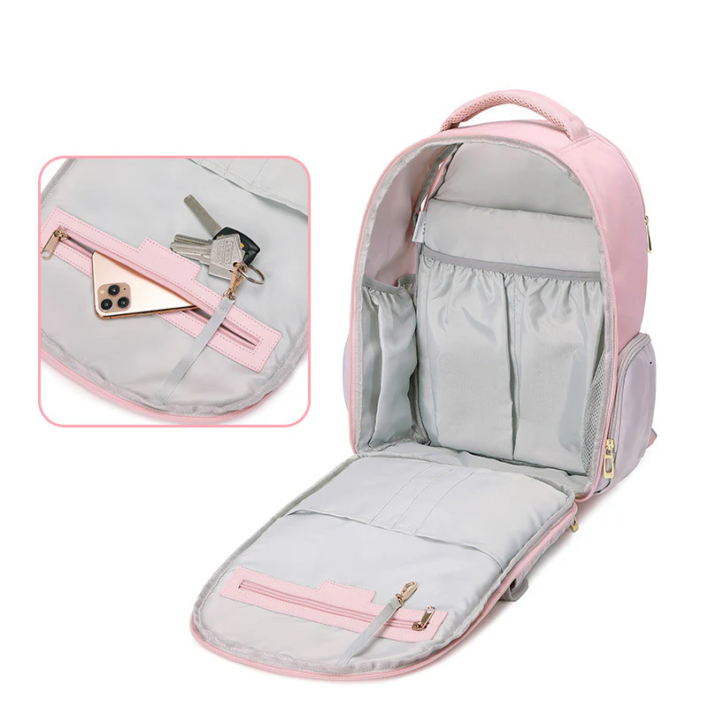 Son design spacieux et intelligent comprend de multiples compartiments dédiés : poches isothermes pour biberons, compartiment étanche pour les vêtements mouillés, pochettes pour lingettes et couches, et bien plus encore.