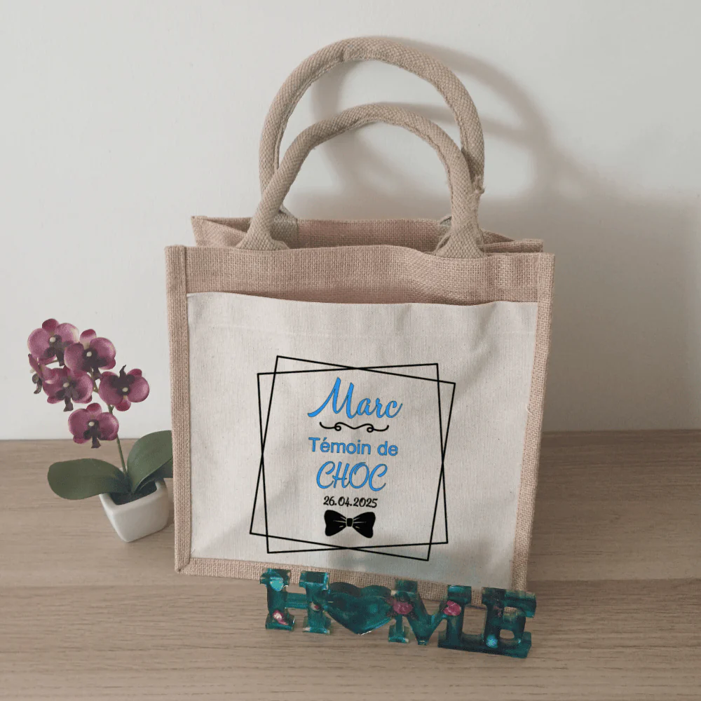 Faites de chaque moment un souvenir inoubliable avec nos sacs en jute personnalisés, spécialement conçus pour les enterrements de vie de jeune fille (EVJF), de garçon (EVG) et les mariages !