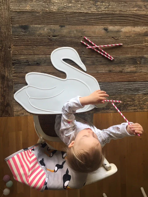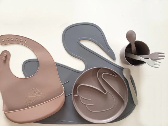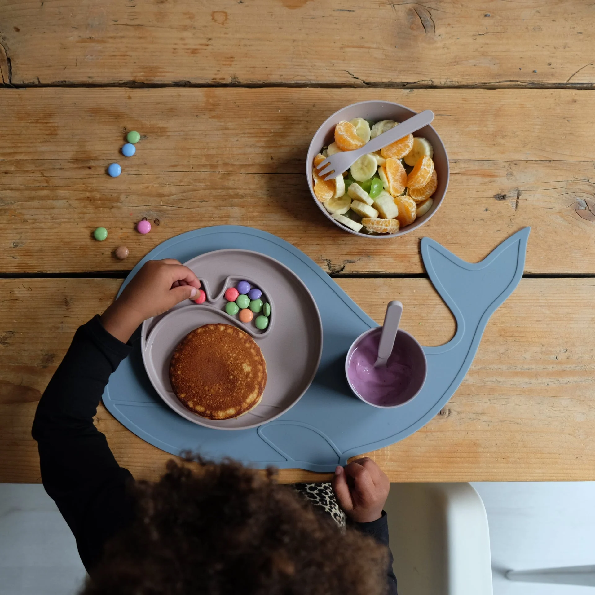 Un set de table en silicone Baleine ou Cygne. Facile à nettoyer dans le lave-vaisselle. Age: 3+ Made in: Chine Modèle: Baleine Bleu, Cygne Rouge