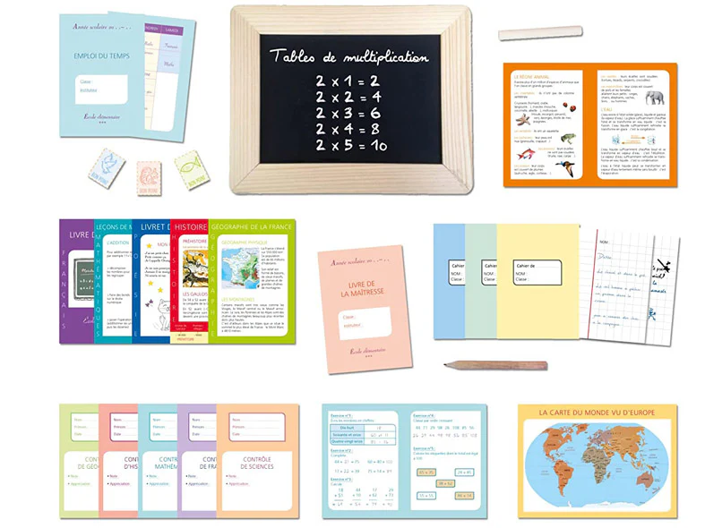 Tous les accessoires pour jouer à la vraie maîtresse ou au vrai maître d’école primaire !