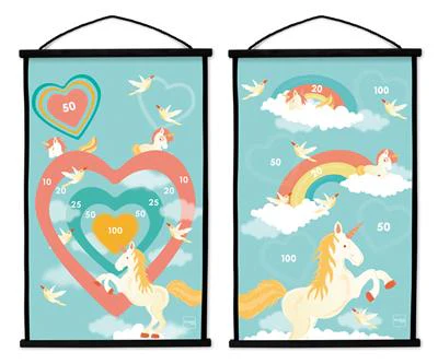 Scratch Active Play: START TO DART Licorne 38x60cm, imprimé en double face, avec 6 fléchettes à ventouse, en boîte, 5+