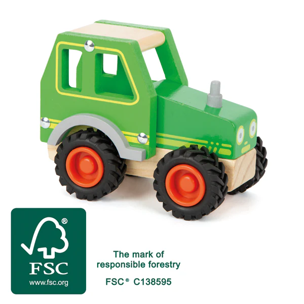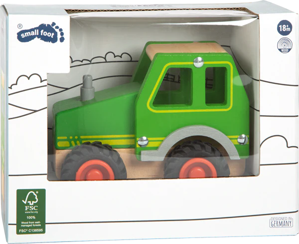 L’air de la campagne! Avec ce tracteur en bois certifié FSC® 100%, tu peux revivre le monde de l’agriculture. Fabriqué en bois robuste, le tracteur roule silencieusement dans les champs pour récolter le maïs ou amasser le foin. Et après la récolte, vient le temps de labourer! Par l’ouverture, on attrape le tracteur facilement. Un joli jouet pour se sentir comme à la campagne.