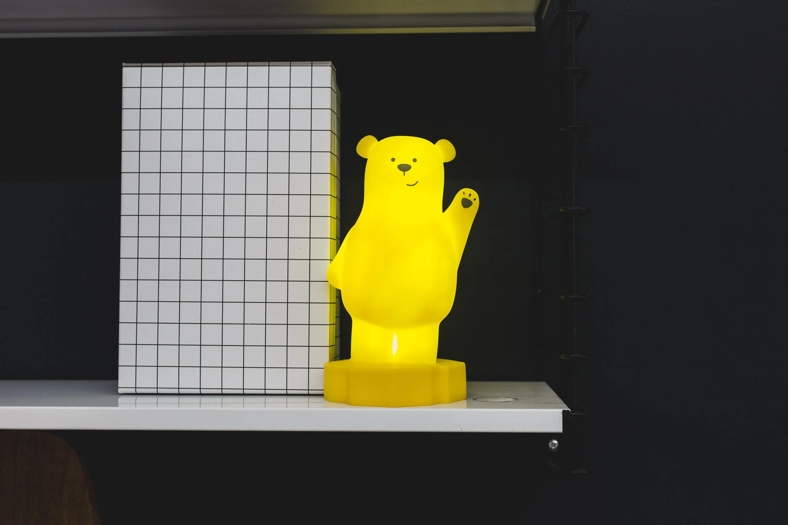 Ours Lou en version LED, marche avec 3 piles AAA rechargeable (non-fournis). On/OFF/Timer 5min. Timer 5 minutes Age: 3+ Ampoule: Led intégré Classe: A++ Colis : dimensions: 11 x 12 x 21 cm Colis : poids: 340 g Couleur: Blanc, Curry Dimensions: 11 × 10.5 × 20 cm Made in: Chine Matériaux: PVC sans Phtalates […]