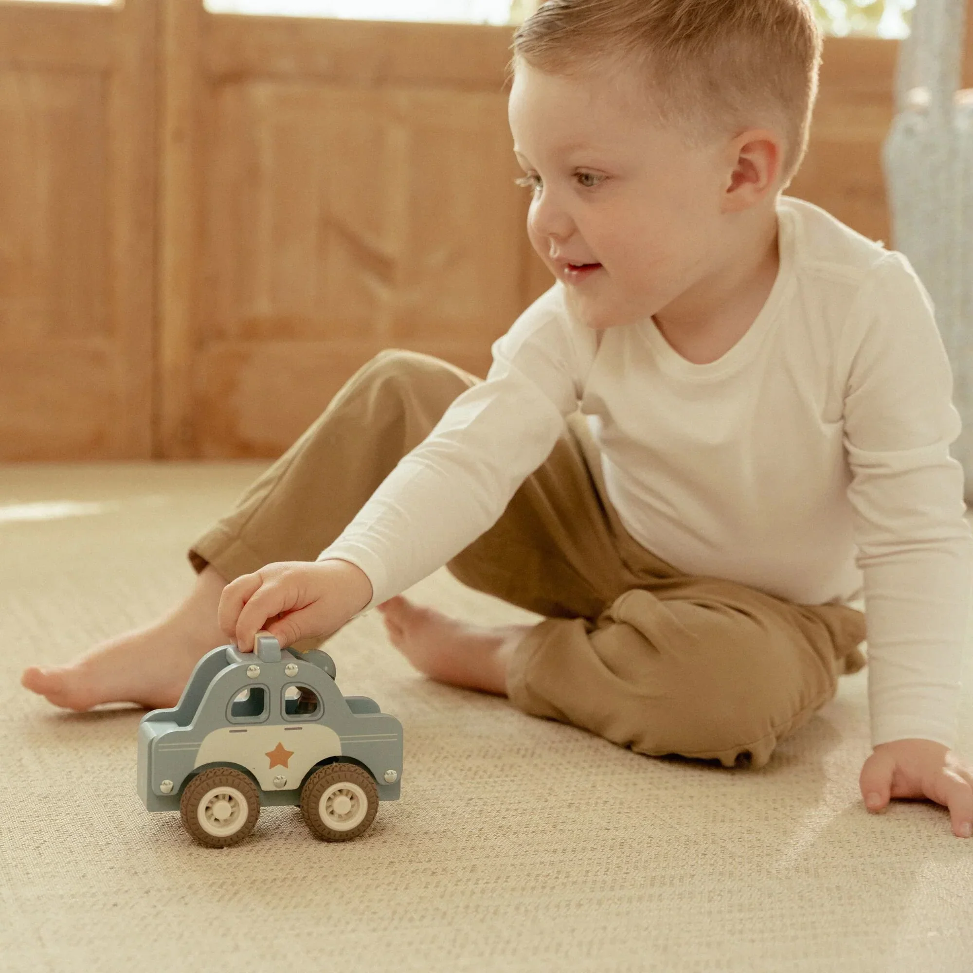 Urgence? La voiture de police en bois fonce rapidement vers le lieu du crime! Avec des roues en caoutchouc pour des trajets en douceur et une courageuse agente de police au volant, vous êtes prêt à garder la ville en sécurité. Rejouez des poursuites palpitantes et mettez les bandits derrière les barreaux. Ce jouet de voiture de police est parfait pour les jeux de rôle et se combine parfaitement avec le commissariat de police en bois. Qui allez-vous aider aujourd’hui en ville?